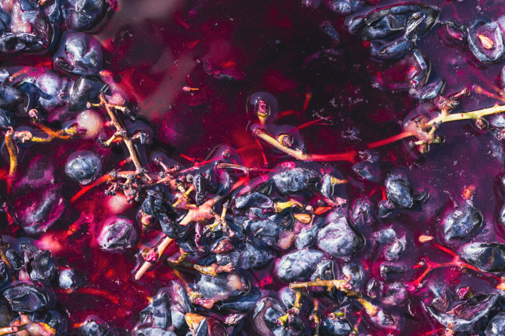 The tannins come from the grape skin, seeds and stems that remain during the fermentation process. The pigment from the skins also give red wine its colour. Because the skins are typically removed during the fermentation of white wine, white wines are very low in tannin. In fact, some white wines have no tannin at all.